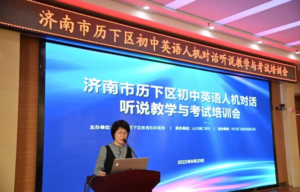為滿足英語聽說機考教育改革需求,加快英語聽說教學模式轉(zhuǎn)變,提高英語聽說教學質(zhì)量,濟南市歷下區(qū)教體局在“歷下智慧教育+因材施教項目”中建設了英語聽說教考平臺、英語聽說教學系統(tǒng)及模擬考試系統(tǒng)。9月20日,濟南市歷下區(qū)初中英語人機對話聽說教學與考試培訓在山大輔仁學校舉辦,進一步探索英語聽說教學新途徑,全面發(fā)揮平臺及系統(tǒng)的應用價值,保證各校英語聽說教學課程有序開展。