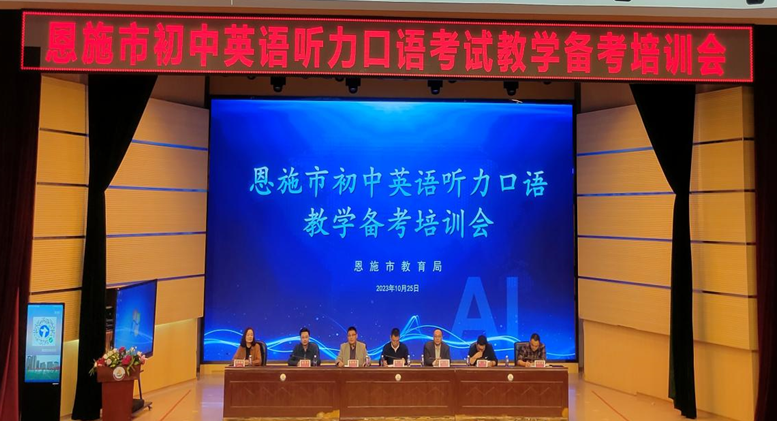 為響應(yīng)湖北省中考政策要求,加快推進恩施市英語教師口語教學(xué)意識,培養(yǎng)學(xué)生英語聽說能力,10月25日,恩施市教育局在恩施思源實驗學(xué)校開展了恩施市初中英語聽力口語考試教學(xué)備考培訓(xùn)會。大會由恩施市教學(xué)研究和教師培訓(xùn)中心副主任董祖昌主持,出席本次活動領(lǐng)導(dǎo)有:恩施市教育局副局長劉靜,恩施市研培中心副主任董祖昌,恩施市研培中心初中室主任付勇,恩施市研培中心初中英語教研員康詠梅及恩施市各初中學(xué)校教學(xué)副校長、英語教研組長、各年級英語備課組長150余人。