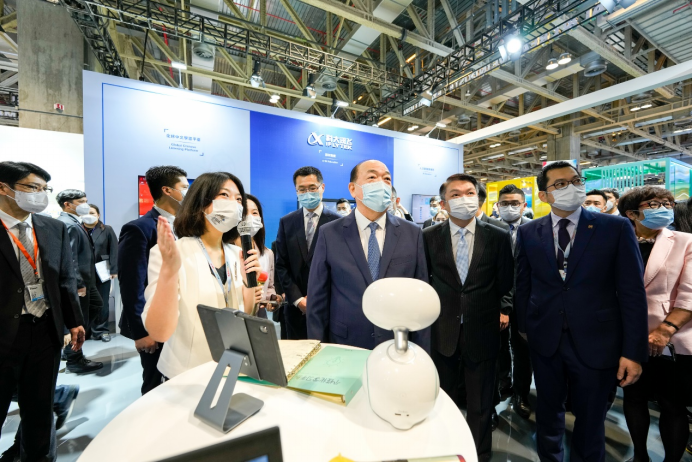 2022年10月20日上午,第27屆澳門國際貿(mào)易投資展覽會(MIF)在澳門開幕,中華人民共和國澳門特別行政區(qū)行政長官賀一誠、澳門特別行政區(qū)經(jīng)濟財政司司長李偉農(nóng)、浙江省副省長盧山一行來到科大訊飛展區(qū),現(xiàn)場體驗并充分肯定了科大訊飛智慧教育、全球中文學習平臺、人工智能創(chuàng)新教育、訊飛聽見等產(chǎn)品,對訊飛人工智能技術(shù)助力多彩澳門建設和科技人才儲備充滿期待。