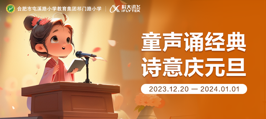 為深入學(xué)習(xí)宣傳貫徹黨的二十大精神,全面貫徹黨的教育方針,落實立德樹人根本任務(wù),以閱讀啟迪智慧、引領(lǐng)成長,進一步推進書香校園建設(shè),合肥市屯溪路小學(xué)教育集團祁門路小學(xué)聯(lián)合科大訊飛AI朗讀亭小程序于2023年12月20日開展“童聲誦經(jīng)典,詩意慶元旦”線上朗讀活動。