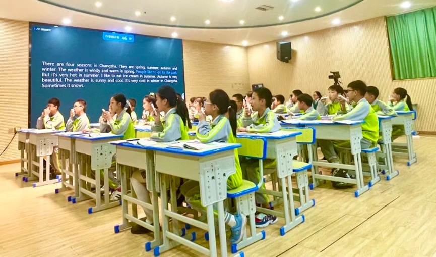 為進(jìn)一步推進(jìn)智慧教育,充分發(fā)揮現(xiàn)代信息技術(shù)對(duì)英語(yǔ)課堂學(xué)習(xí)的支持與服務(wù)作用,提升學(xué)生的英語(yǔ)核心素養(yǎng),10月26日下午,天心區(qū)小學(xué)英語(yǔ)基于國(guó)測(cè)結(jié)果應(yīng)用的“AI賦能英語(yǔ)聽(tīng)說(shuō)課堂”暨天心區(qū)湘府英才小學(xué)英語(yǔ)校本研訓(xùn)開(kāi)放活動(dòng)在湘府英才小學(xué)多媒體教室如期舉行。參與本次開(kāi)放活動(dòng)的有天心區(qū)教科中心小學(xué)英語(yǔ)教研員歐陽(yáng)勝美、天心區(qū)中小學(xué)信息技術(shù)教研員施展、湘府英才小學(xué)黨總支書(shū)記柳楨、湘府英才小學(xué)校長(zhǎng)楊宗軍、湘府英才小學(xué)副校長(zhǎng)徐裴以及天心區(qū)各學(xué)校的英語(yǔ)老師。