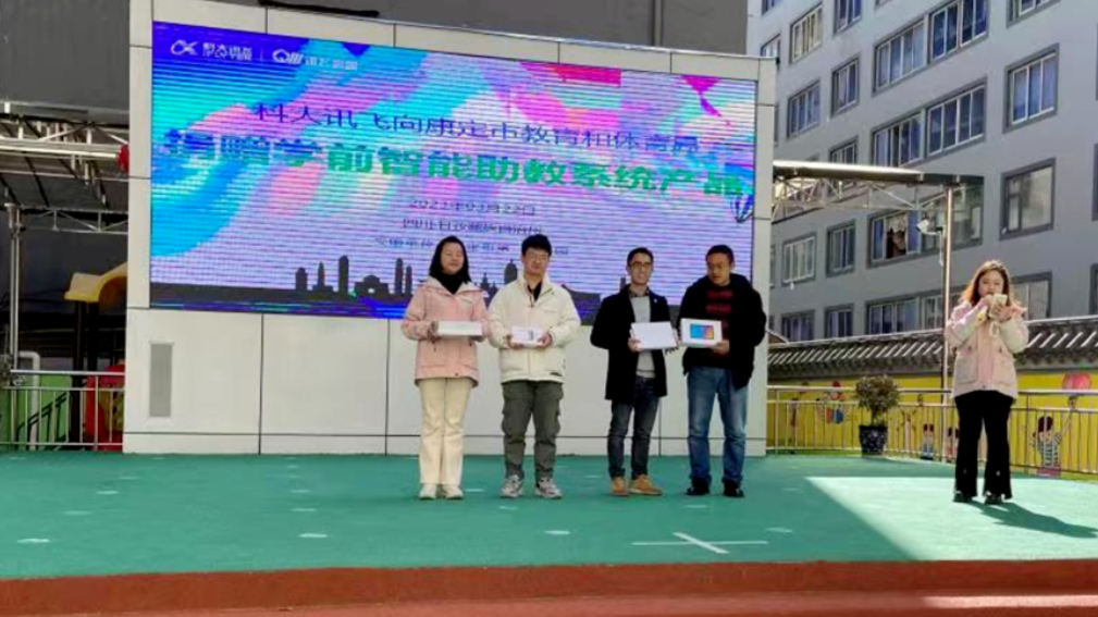 3月22日,正值春分,四川省甘孜州推普工作收到一份特殊禮物??拼笥嶏w股份有限公司在康定市和瀘定縣分別舉辦“助力甘孜州國(guó)家通用語(yǔ)言文字普及和學(xué)前學(xué)普”捐贈(zèng)公益活動(dòng),向康定市第一幼兒園和瀘定縣瀘橋鎮(zhèn)幼兒園合計(jì)捐贈(zèng)兩套教師普通話訓(xùn)練平臺(tái)和四套學(xué)前智能助教系統(tǒng)。這些產(chǎn)品覆蓋兩所幼兒園的8個(gè)班級(jí),100多位教師。
